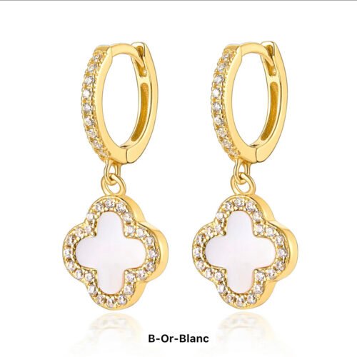 30.00 $Boucles d’oreilles style classique en argent sterling 925 ,plaqué or blanc coquille mère naturelle tréfle à quatre feuilles pour fille